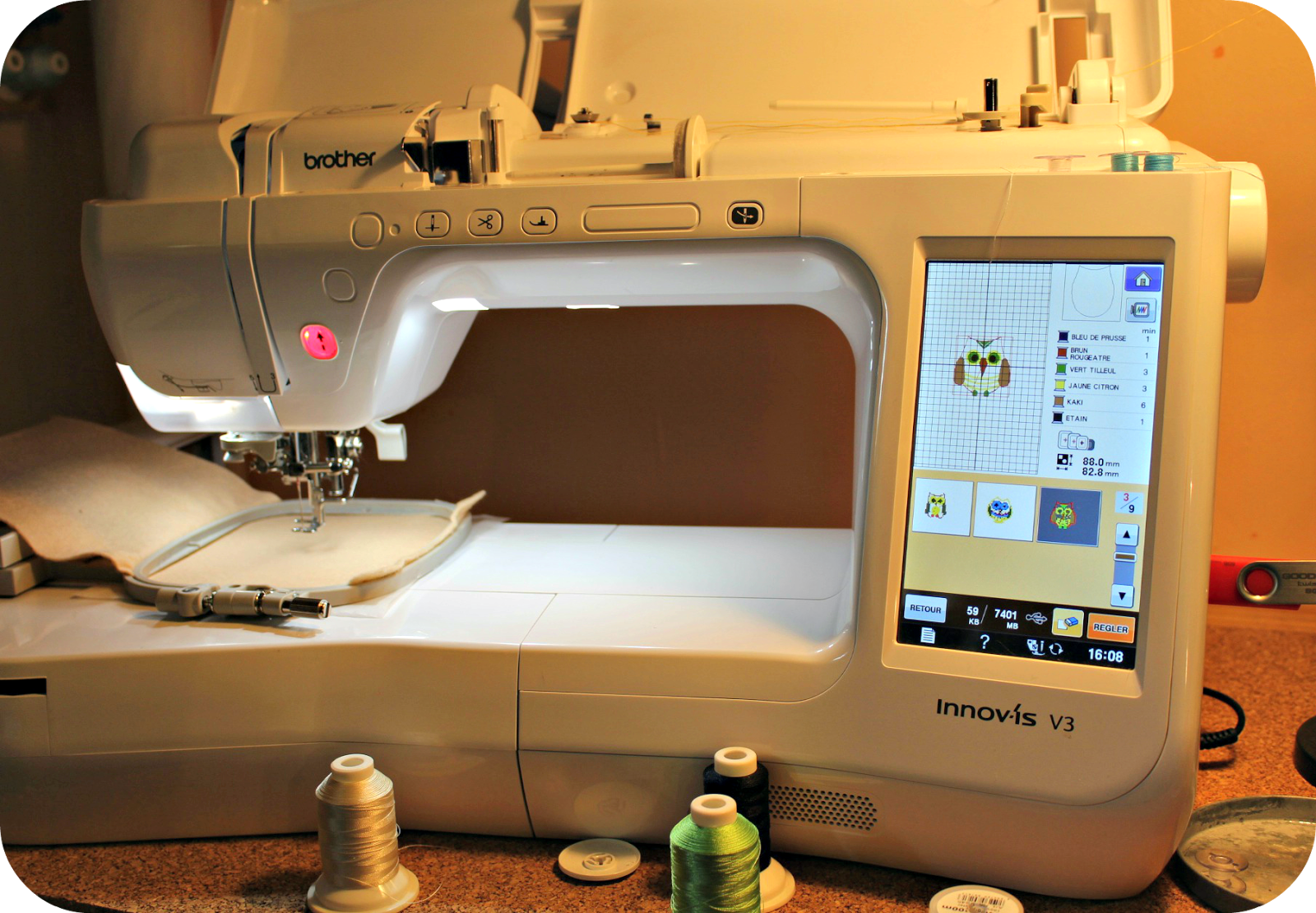 et j'ai moins apprécié qu'il n'y ai pas de capteur de canette, je me suis retrouvée à coudre dans le vide sans m'en apercevoir !